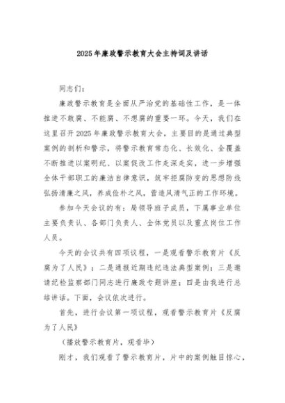 / 【七哥公文】2025年:2025年廉政警示教育大会主持词及讲话+更多免费公文+VX:QiGeGongWen2024