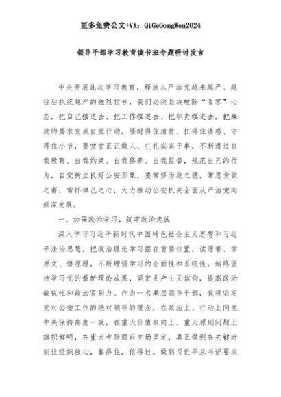 【七哥公文】2025年:领导干部学习教育读书班专题研讨发言+更多免费公文+VX:QiGeGongWen2024+更多免费公文+VX:QiGeGongWen2024