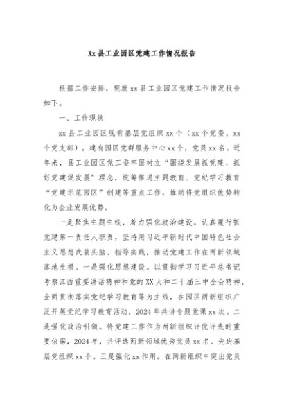 / 【七哥公文】2025年:Xx县工业园区党建工作情况报告+更多免费公文+VX:QiGeGongWen2024