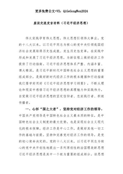 【七哥公文】2025年:座谈交流发言材料(习近平经济思想)+更多免费公文+VX:QiGeGongWen2024+更多免费公文+VX:QiGeGongWen2024