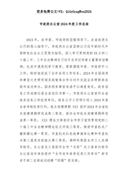 【七哥公文】2025年:市政府办公室2024年度工作总结+更多免费公文+VX:QiGeGongWen2024+更多免费公文+VX:QiGeGongWen2024