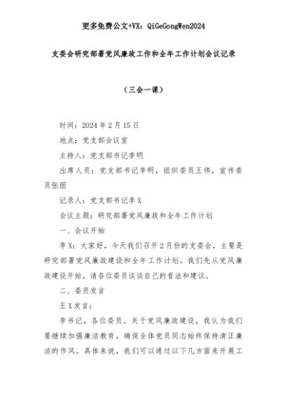 【七哥公文】2025年:支委会研究部署党风廉政工作和全年工作计划会议记录(三会一课)+更多免费公文+VX:QiGeGongWen2024+更多免费公文+VX:QiGeGongWen2024