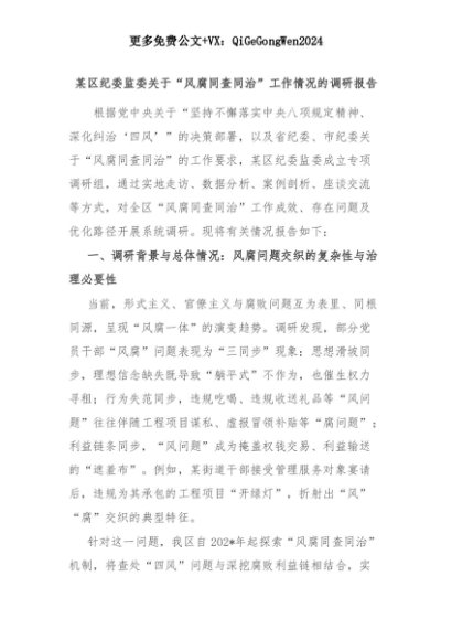 【七哥公文】2025年:某区纪委监委关于“风腐同查同治”工作情况的调研报告+更多免费公文+VX:QiGeGongWen2024+更多免费公文+VX:QiGeGongWen2024