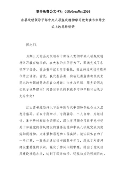 【七哥公文】2025年:在县处级领导干部中央八项规定精神学习教育读书班结业式上的总结讲话+更多免费公文+VX:QiGeGongWen2024+更多免费公文+VX:QiGeGongWen2024