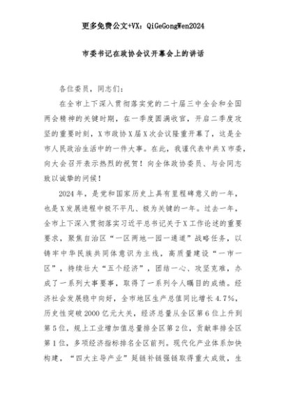 【七哥公文】2025年:市委书记在政协会议开幕会上的讲话+更多免费公文+VX:QiGeGongWen2024+更多免费公文+VX:QiGeGongWen2024