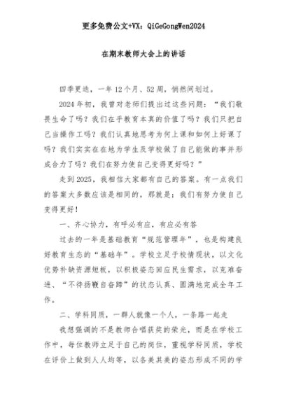 【七哥公文】2025年:在期末教师大会上的讲话+更多免费公文+VX:QiGeGongWen2024+更多免费公文+VX:QiGeGongWen2024