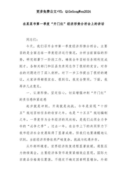 【七哥公文】2025年:在某某市第一季度“开门红”经济形势分析会上的讲话+更多免费公文+VX:QiGeGongWen2024+更多免费公文+VX:QiGeGongWen2024