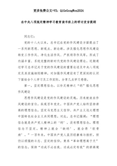 【七哥公文】2025年:在中央八项规定精神学习教育读书班上的研讨发言提纲+更多免费公文+VX:QiGeGongWen2024+更多免费公文+VX:QiGeGongWen2024