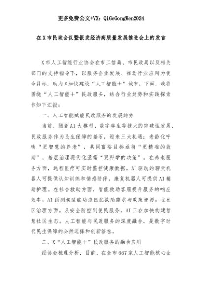 【七哥公文】2025年:在X市民政会议暨银发经济高质量发展推进会上的发言+更多免费公文+VX:QiGeGongWen2024+更多免费公文+VX:QiGeGongWen2024