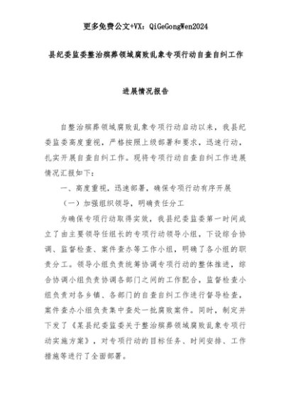 【七哥公文】2025年:县纪委监委整治殡葬领域腐败乱象专项行动自查自纠工作进展情况报告+更多免费公文+VX:QiGeGongWen2024+更多免费公文+VX:QiGeGongWen2024