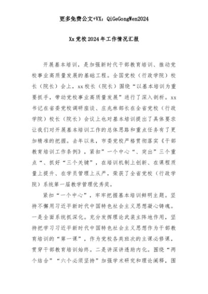 【七哥公文】2025年:Xx党校2024年工作情况汇报+更多免费公文+VX:QiGeGongWen2024+更多免费公文+VX:QiGeGongWen2024