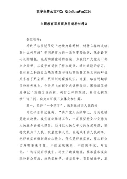 【七哥公文】2025年:主题教育正反面典型剖析材料2+更多免费公文+VX:QiGeGongWen2024+更多免费公文+VX:QiGeGongWen2024