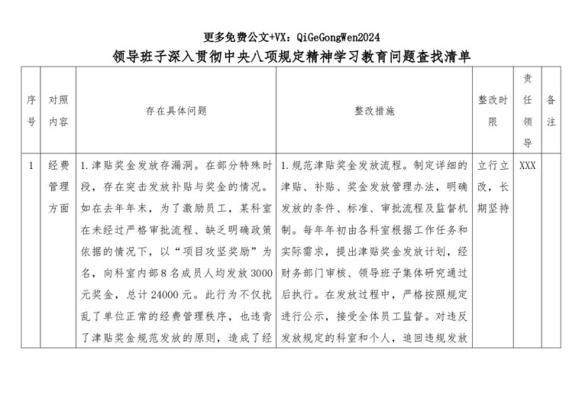 【七哥公文】2025年:领导班子深入贯彻中央八项规定精神学习教育问题查找清单+更多免费公文+VX:QiGeGongWen2024+更多免费公文+VX:QiGeGongWen2024