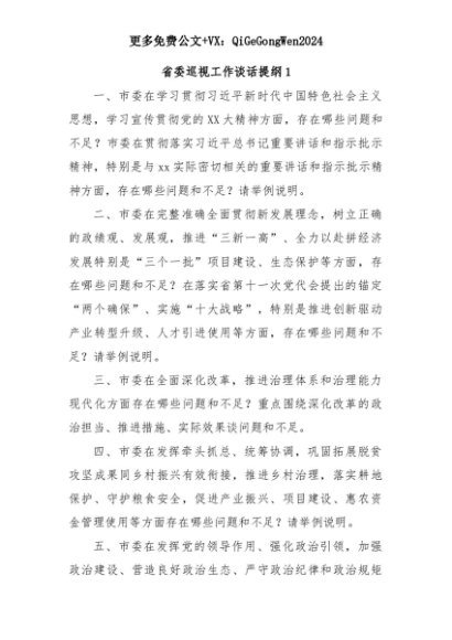 【七哥公文】2025年:省委巡视工作谈话提纲1+更多免费公文+VX:QiGeGongWen2024+更多免费公文+VX:QiGeGongWen2024