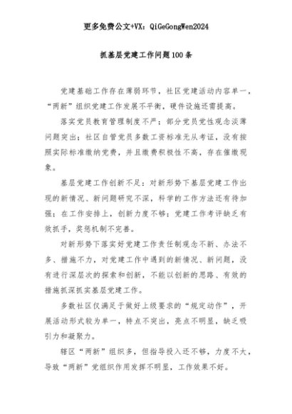 【七哥公文】2025年:(100条)抓基层党建工作问题+更多免费公文+VX:QiGeGongWen2024+更多免费公文+VX:QiGeGongWen2024