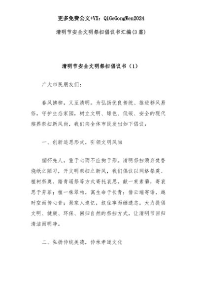 【七哥公文】2025年:(3篇)清明节安全文明祭扫倡议书汇编+更多免费公文+VX:QiGeGongWen2024+更多免费公文+VX:QiGeGongWen2024