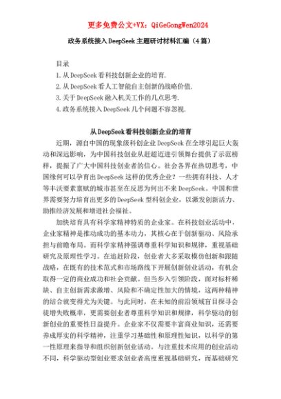 【七哥公文】2025年:(4篇)政务系统接入DeepSeek主题研讨材料汇编+更多免费公文+VX:QiGeGongWen2024+更多免费公文+VX:QiGeGongWen2024