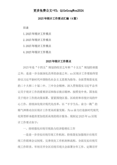 【七哥公文】2025年:(4篇)2025年统计工作要点汇编+更多免费公文+VX:QiGeGongWen2024+更多免费公文+VX:QiGeGongWen2024