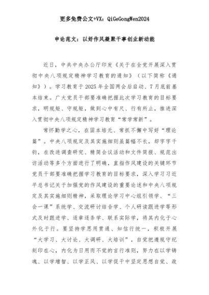 【七哥公文】2025年:申论范文:以好作风凝聚干事创业新动能+更多免费公文+VX:QiGeGongWen2024+更多免费公文+VX:QiGeGongWen2024