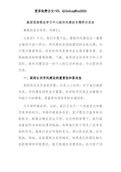 【七哥公文】2025年:集团党委理论学习中心组作风建设专题研讨发言+更多免费公文+VX:QiGeGongWen2024+更多免费公文+VX:QiGeGongWen2024
