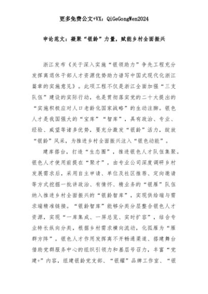 【七哥公文】2025年:申论范文:凝聚“银龄”力量,赋能乡村全面振兴+更多免费公文+VX:QiGeGongWen2024+更多免费公文+VX:QiGeGongWen2024
