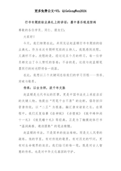 【七哥公文】2025年:行书专题班结业典礼上的讲话:墨中喜乐砚底惊鸿+更多免费公文+VX:QiGeGongWen2024+更多免费公文+VX:QiGeGongWen2024