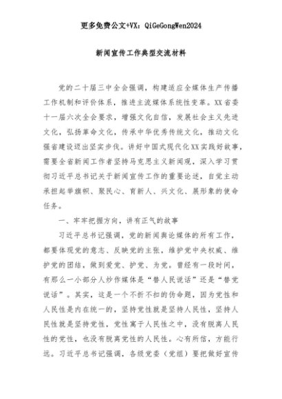 【七哥公文】2025年:新闻宣传工作典型交流材料+更多免费公文+VX:QiGeGongWen2024+更多免费公文+VX:QiGeGongWen2024