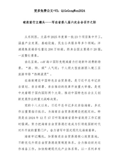 【七哥公文】2025年:破浪前行立潮头——写在省委八届六次全会召开之际+更多免费公文+VX:QiGeGongWen2024+更多免费公文+VX:QiGeGongWen2024