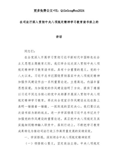 【七哥公文】2025年:在司法厅深入贯彻中央八项规定精神学习教育读书班上的讲话+更多免费公文+VX:QiGeGongWen2024+更多免费公文+VX:QiGeGongWen2024
