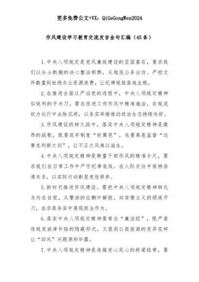 【七哥公文】2025年:(45条)作风建设学习教育交流发言金句汇编+更多免费公文+VX:QiGeGongWen2024+更多免费公文+VX:QiGeGongWen2024
