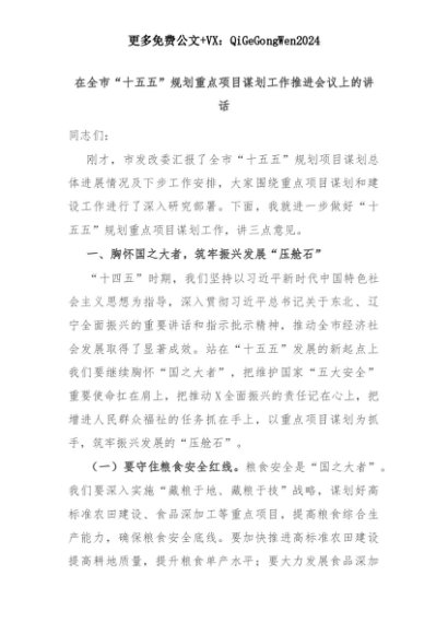 【七哥公文】2025年:在全市“十五五”规划重点项目谋划工作推进会议上的讲话+更多免费公文+VX:QiGeGongWen2024+更多免费公文+VX:QiGeGongWen2024
