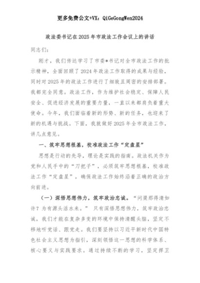 【七哥公文】2025年:政法委书记在2025年市政法工作会议上的讲话+更多免费公文+VX:QiGeGongWen2024+更多免费公文+VX:QiGeGongWen2024