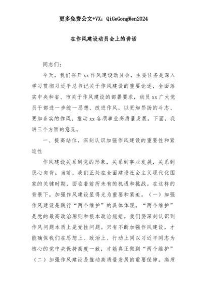 【七哥公文】2025年:在作风建设动员会上的讲话+更多免费公文+VX:QiGeGongWen2024+更多免费公文+VX:QiGeGongWen2024