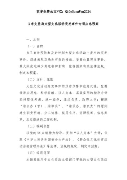 【七哥公文】2025年:X市文旅局大型文化活动突发事件专项应急预案+更多免费公文+VX:QiGeGongWen2024+更多免费公文+VX:QiGeGongWen2024