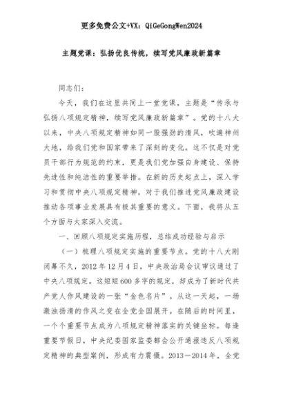 【七哥公文】2025年:主题党课:弘扬优良传统,续写党风廉政新篇章+更多免费公文+VX:QiGeGongWen2024+更多免费公文+VX:QiGeGongWen2024