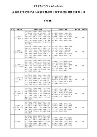 【七哥公文】2025年:乡镇机关党支部中央八项规定精神学习教育检视问题整改清单(11个方面)+更多免费公文+VX:QiGeGongWen2024+更多免费公文+VX:QiGeGongWen2024