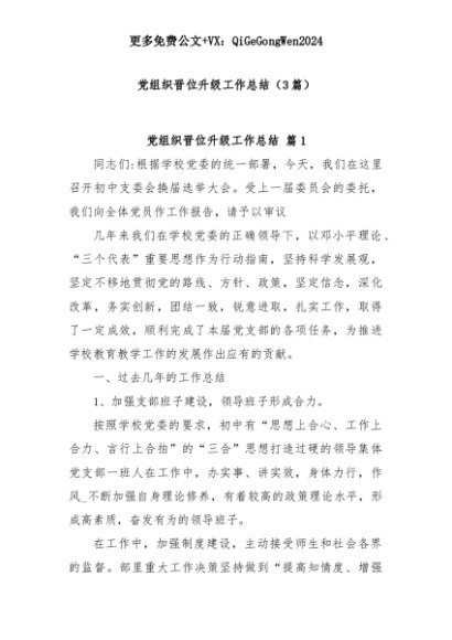 【七哥公文】2025年:(3篇)党组织晋位升级工作总结+更多免费公文+VX:QiGeGongWen2024+更多免费公文+VX:QiGeGongWen2024