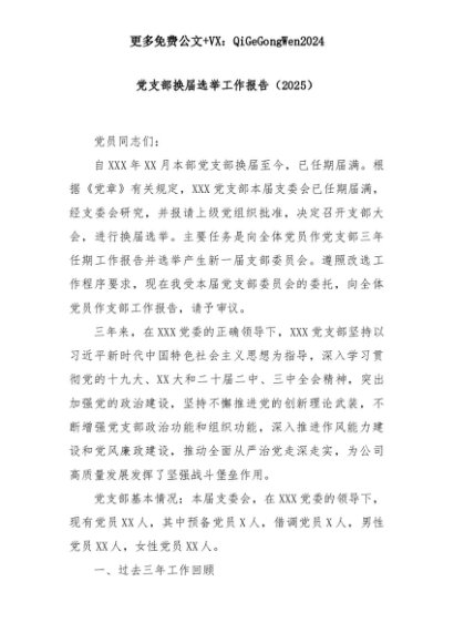【七哥公文】2025年:党支部换届选举工作报告(2025)+更多免费公文+VX:QiGeGongWen2024+更多免费公文+VX:QiGeGongWen2024