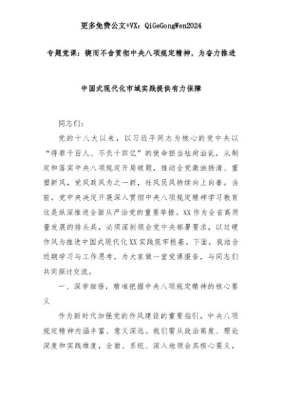 【七哥公文】2025年:专题党课:锲而不舍贯彻中央八项规定精神,为奋力推进中国式现代化市域实践提供有力保障+更多免费公文+VX:QiGeGongWen2024+更多免费公文+VX:QiGeGongWen2024
