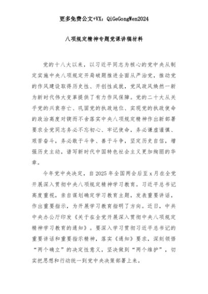 【七哥公文】2025年:八项规定精神专题党课讲稿材料+更多免费公文+VX:QiGeGongWen2024+更多免费公文+VX:QiGeGongWen2024