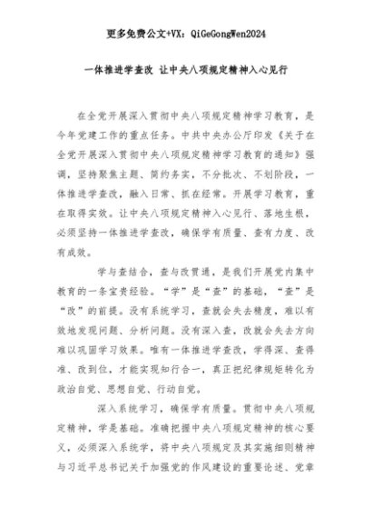 【七哥公文】2025年:一体推进学查改 让中央八项规定精神入心见行+更多免费公文+VX:QiGeGongWen2024+更多免费公文+VX:QiGeGongWen2024