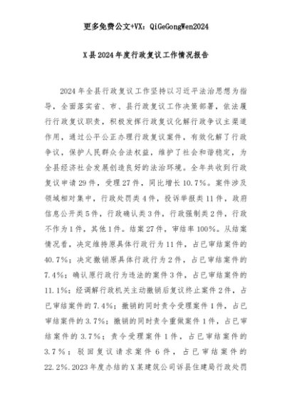 【七哥公文】2025年:X县2024年度行政复议工作情况报告+更多免费公文+VX:QiGeGongWen2024+更多免费公文+VX:QiGeGongWen2024