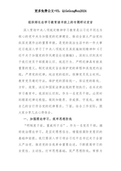 【七哥公文】2025年:组织部长在学习教育读书班上的专题研讨发言+更多免费公文+VX:QiGeGongWen2024+更多免费公文+VX:QiGeGongWen2024