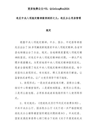 【七哥公文】2025年:违反中央八项规定精神案例剖析之九:违反办公用房管理规定+更多免费公文+VX:QiGeGongWen2024+更多免费公文+VX:QiGeGongWen2024