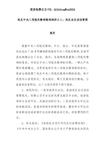 【七哥公文】2025年:违反中央八项规定精神案例剖析之八:违反会议活动管理规定+更多免费公文+VX:QiGeGongWen2024+更多免费公文+VX:QiGeGongWen2024