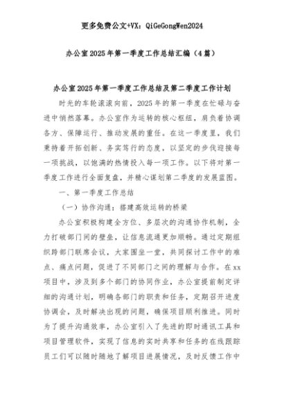 【七哥公文】2025年:(4篇)办公室2025年第一季度工作总结汇编+更多免费公文+VX:QiGeGongWen2024+更多免费公文+VX:QiGeGongWen2024
