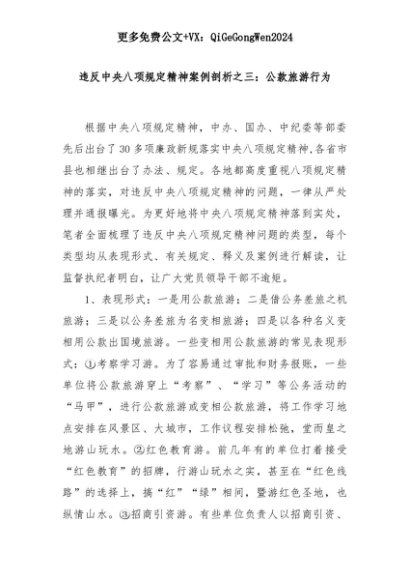 【七哥公文】2025年:违反中央八项规定精神案例剖析之三:公款旅游行为+更多免费公文+VX:QiGeGongWen2024+更多免费公文+VX:QiGeGongWen2024