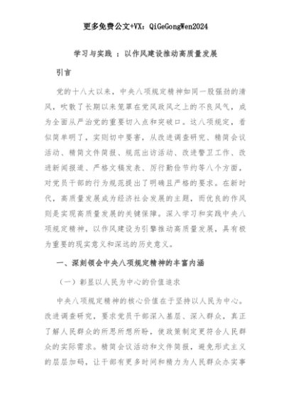 【七哥公文】2025年:学习与实践 :以作风建设推动高质量发展+更多免费公文+VX:QiGeGongWen2024+更多免费公文+VX:QiGeGongWen2024