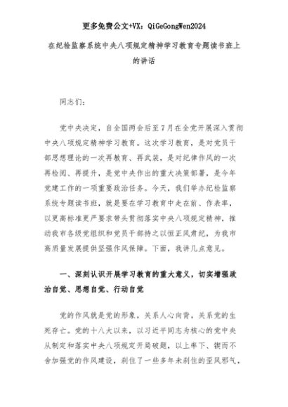 【七哥公文】2025年:在纪检监察系统中央八项规定精神学习教育专题读书班上的讲话+更多免费公文+VX:QiGeGongWen2024+更多免费公文+VX:QiGeGongWen2024