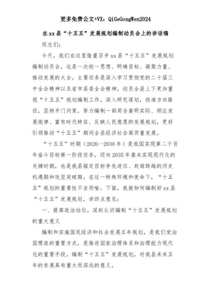 【七哥公文】2025年:在xx县“十五五”发展规划编制动员会上的讲话稿+更多免费公文+VX:QiGeGongWen2024+更多免费公文+VX:QiGeGongWen2024
